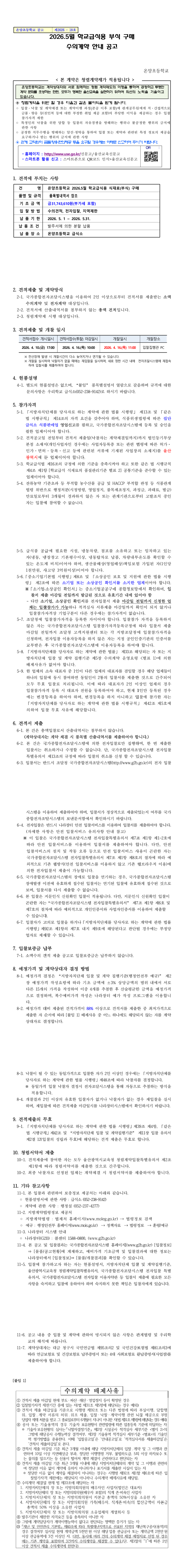2026년 5월 학교급식용 부식 구매 소액수의 안내공고 |