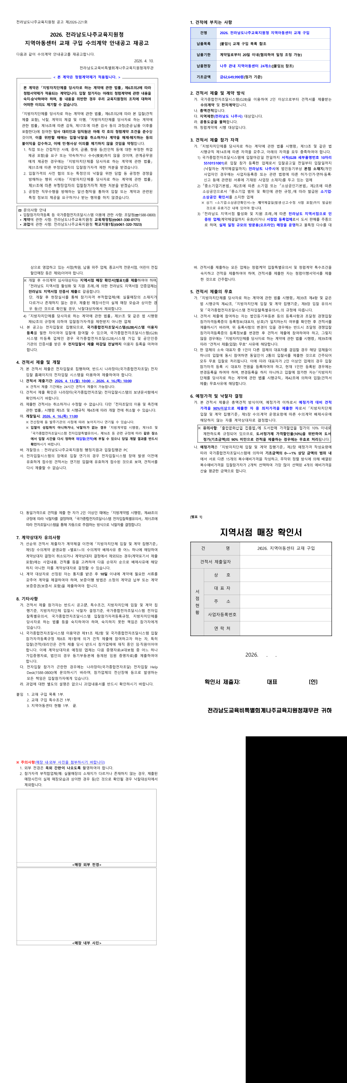2026. 전라남도나주교육지원청 지역아동센터 교재 구입 수의계약 안내 재공고 |