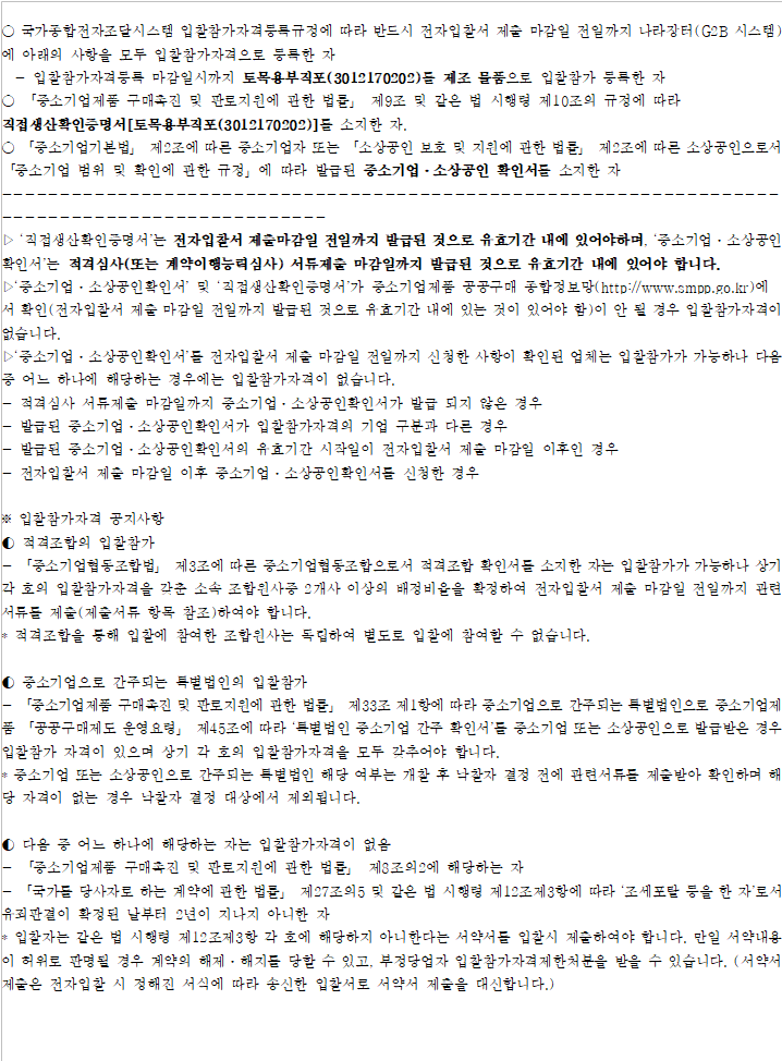 ○ 이 입찰은 「중소기업제품 구매촉진 및 판로지원에 관한 법률」 제7조 제2항 에 따라 낙찰자를 결정합니다.