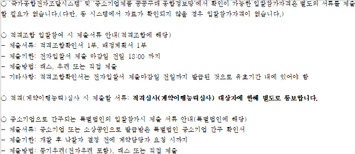 - 조달청 중소기업자간 경쟁물품에 대한 계약이행능력심사 세부기준