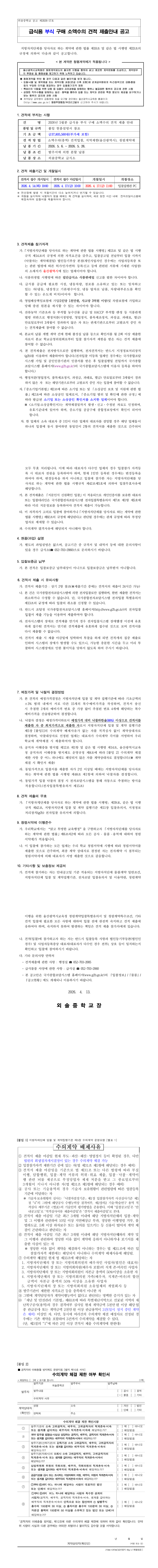 외솔중학교 2026년 5월분 급식용 부식 구매 소액수의 견적 제출 안내 |