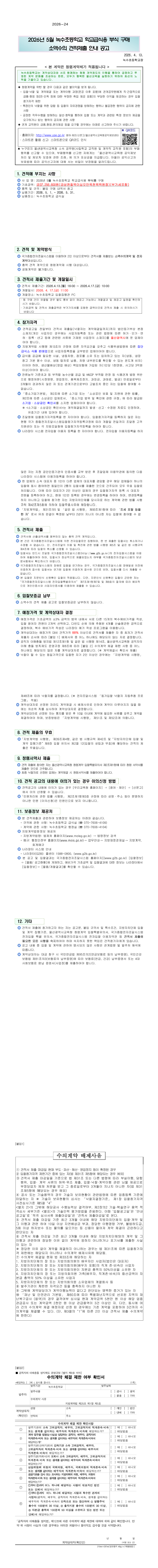 2026년 5월 녹수초등학교 학교급식용 부식 구매 소액수의 견적제출 안내공고 |
