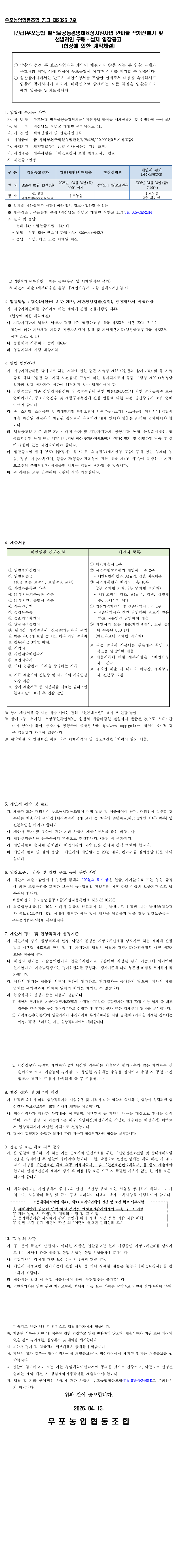 [긴급]2026년 우포농협 밭작물 공동경영체육성지원사업 깐마늘 색채선별기 및 선별라인 구매, 설치(헙상에 의한 계약) |