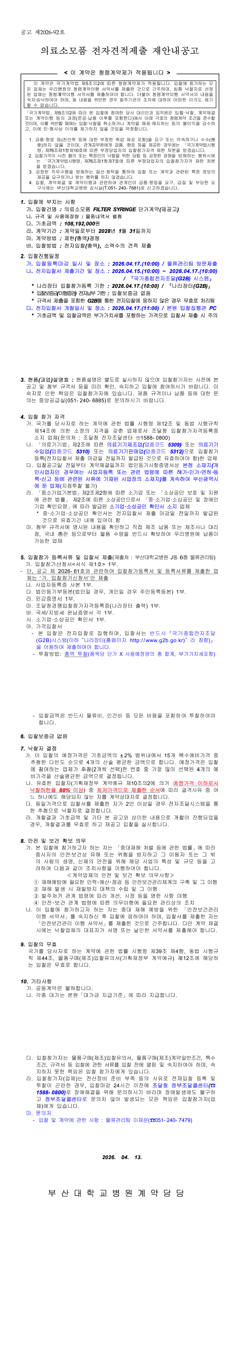 의료소모품 FILTER SYRINGE 단가계약(재공고) |