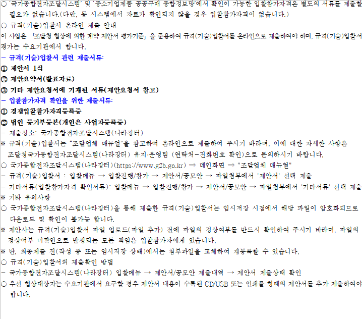 기타 세부사항은 전자입찰 공고서에 첨부된 과업내용서, 내역서 등을 반드시 확인하시기 바랍니다.