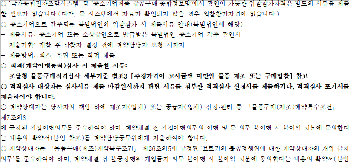 - 조달청 물품구매적격심사 세부기준-추정가격이 고시금액 미만인 물품 제조 또는 구매입찰