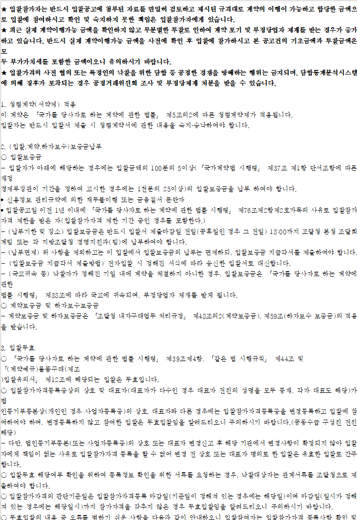 ○ 이 입찰은 「국가를 당사자로 하는 계약에 관한 법률」 제10조 제2항 제1호 및 같은 법 시행령 제42조 제1항에 따라 낙찰
