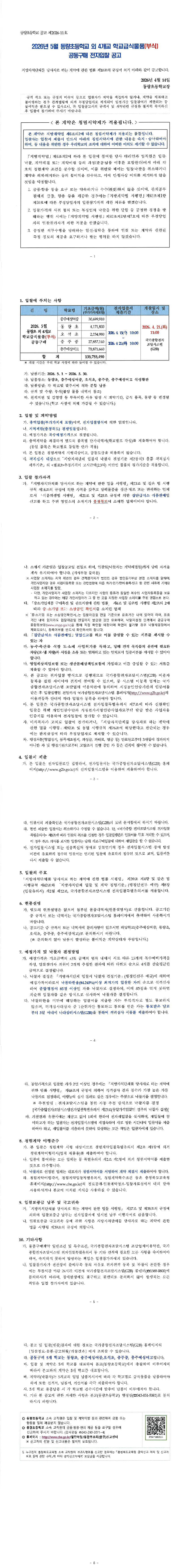 2026년 5월 동량초 외4개교 학교급식물품(부식) 공동구매 전자입찰 공고 |