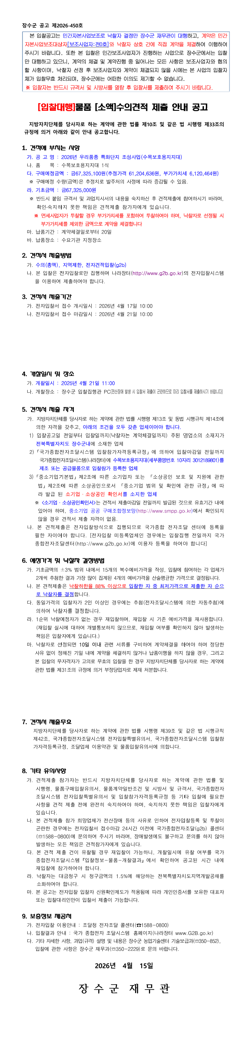 2026년 우리품종 특화단지 조성사업(수목보호용지지대)(입찰대행) |