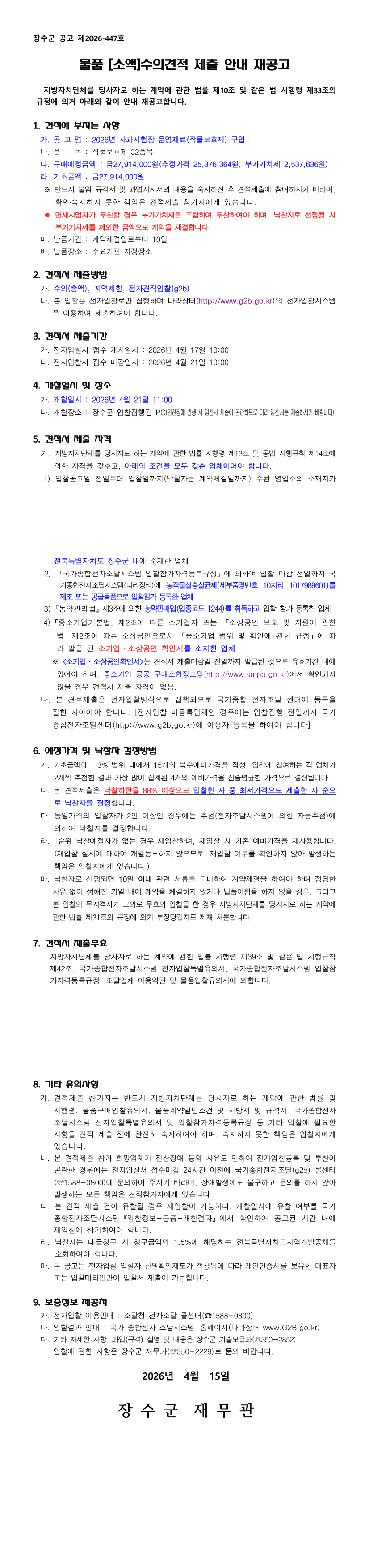 2026년 사과시험장 운영재료(작물보호제) 구입 |