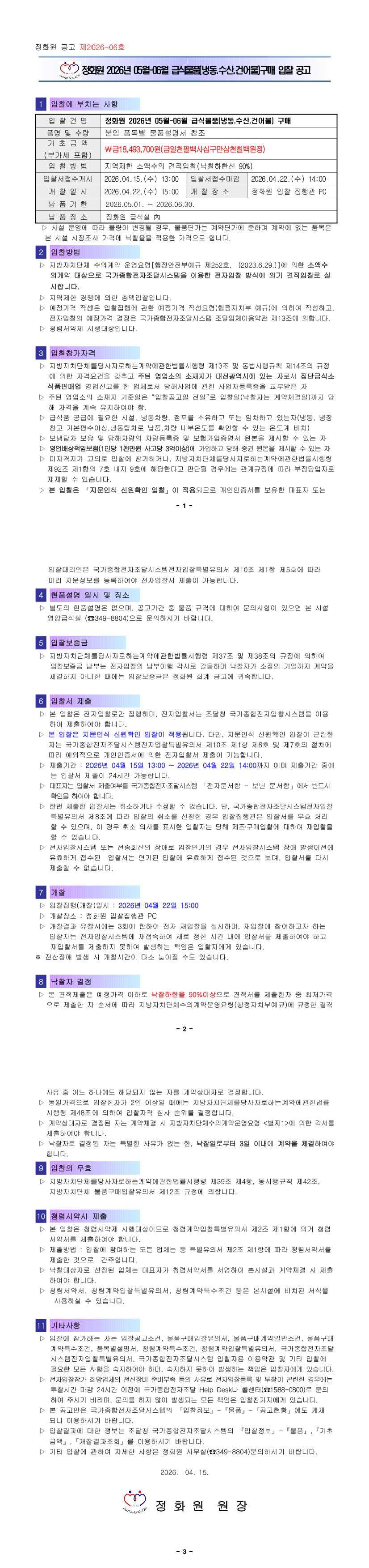 정화원 2026년 05월-06월 급식물품(냉동.수산.건어물) 구매 |