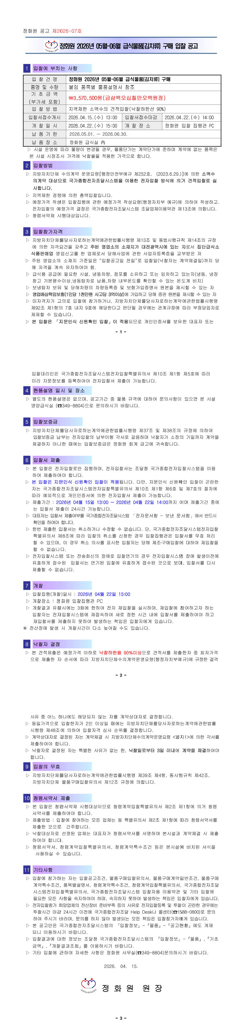 정화원 2026년 05월-06월 급식물품(김치류) 구매 |