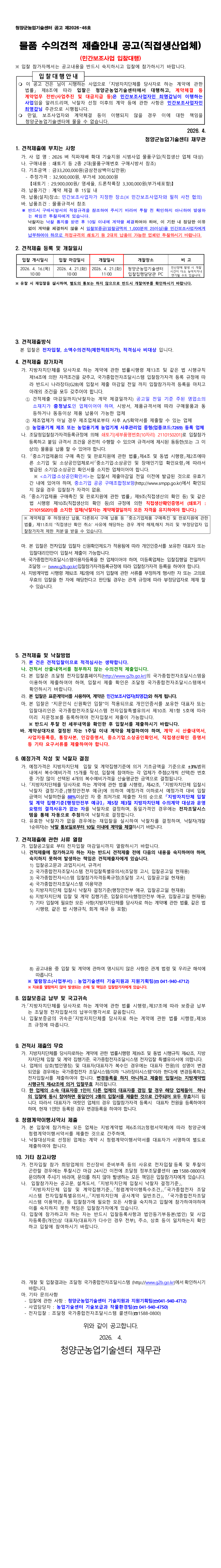 2026년 벼 직파재배 확대 기술지원 시범사업[민간보조사업 입찰대행) 소액수의 견적제출 공고(직접생산업체) |