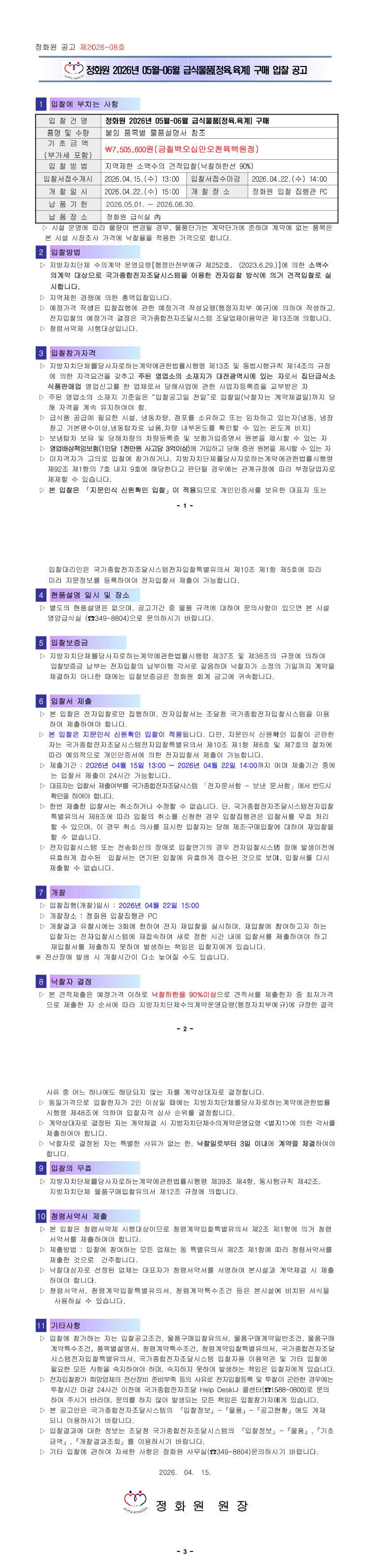 정화원 2026년 05월-06월 급식물품(정육.육계) 구매 |