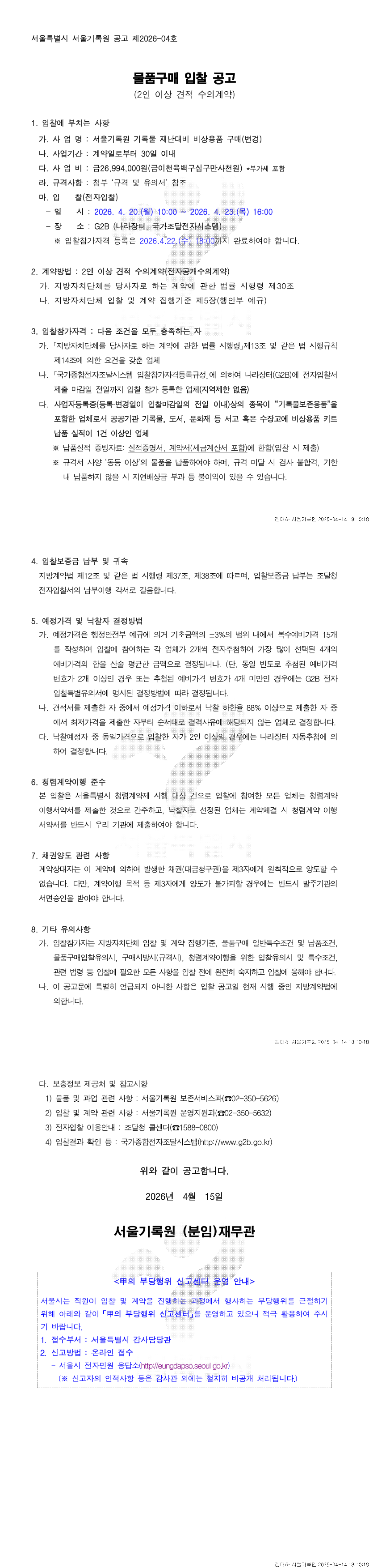 서울기록원 기록물 재난대비 비상용품 구매(변경) |