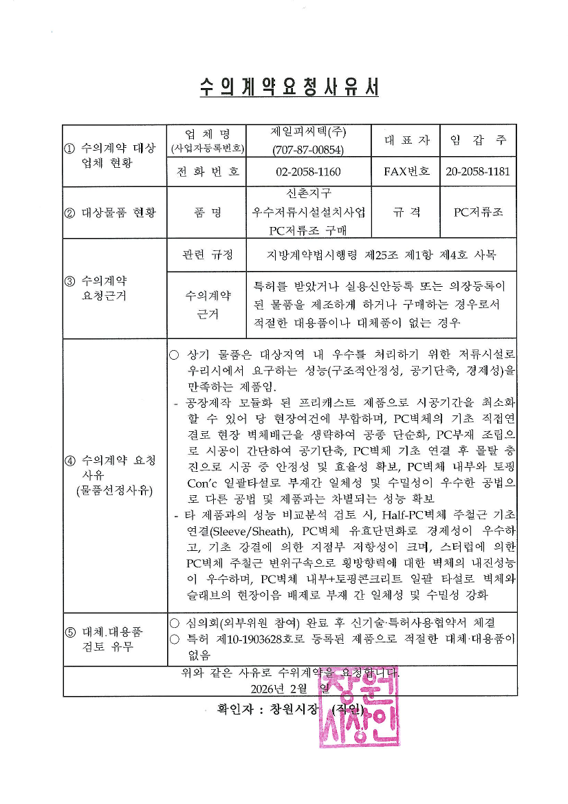 신촌지구 우수저류시설 설치공사(2차분) 관급자재-PC |