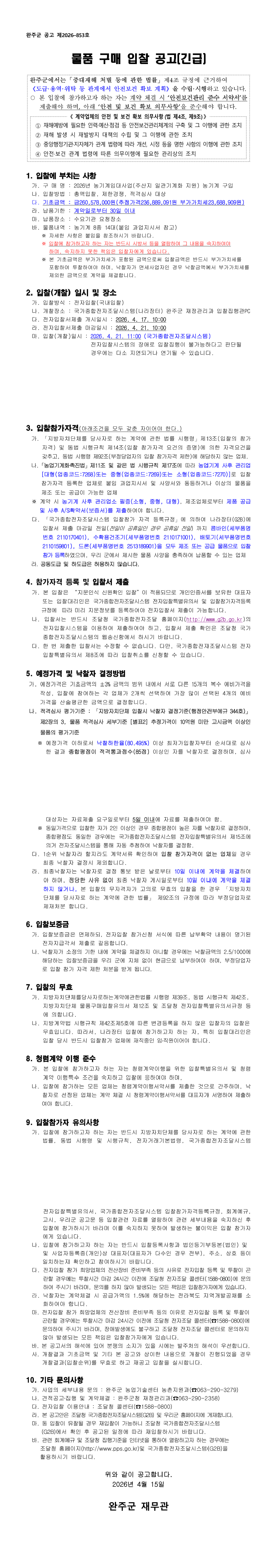 2026년 농기계임대사업(주산지 일관기계화 지원) 농기계 구입 |