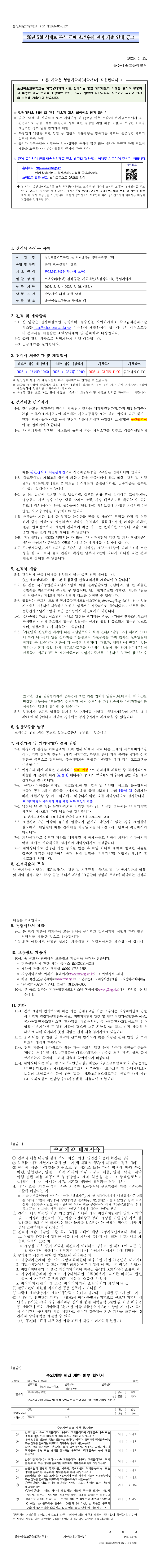 2026년 5월 울산예술고 학교급식용 부식 구매 수의견적 제출 안내 공고 |