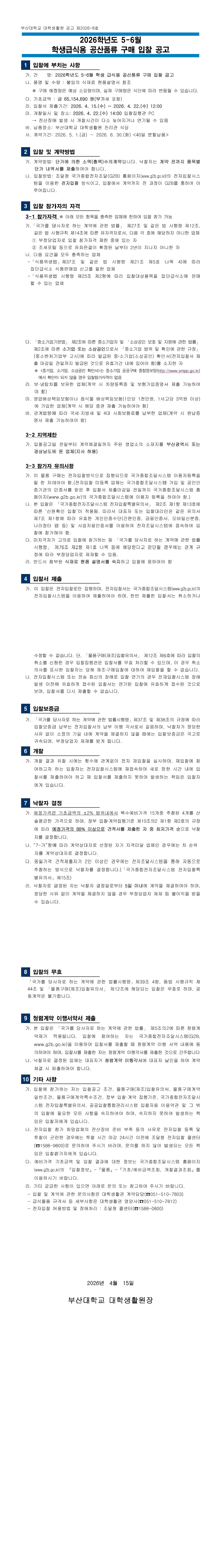 2026학년도 부산대학교 대학생활원 5-6월 학생 급식용 공산품류 구매 입찰 공고 |