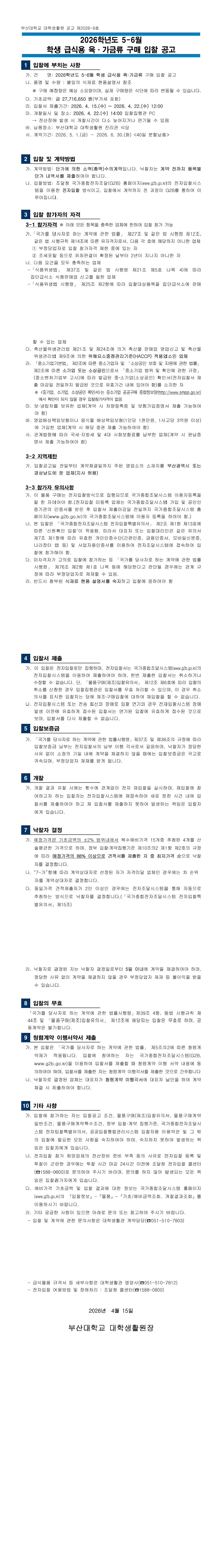 2026학년도 부산대학교 대학생활원 5-6월 학생 급식용 육·가금류 구매 입찰 공고 |