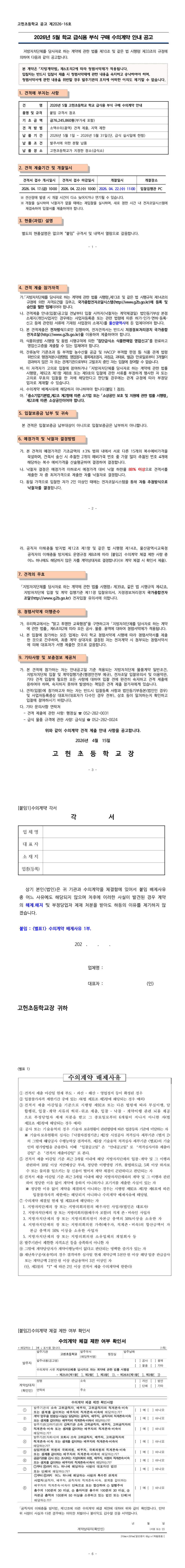 2026년 5월 고헌초 학교급식용 부식구매 수의계약 안내 공고 |