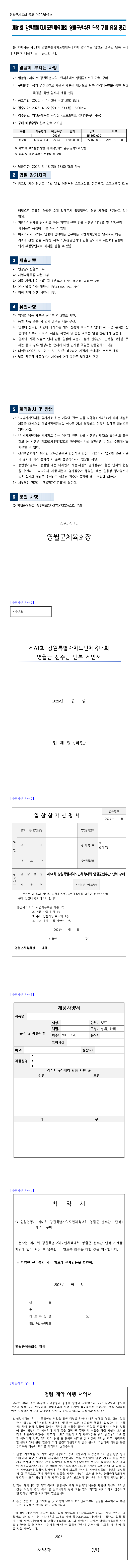 제61회 강원특별자치도민체육대회 영월군선수단 단복 구매 공고 |