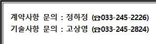○ 계약사항 : 총무부 정하정 (☎ 033-245-2226, Fax 033-245-2999,