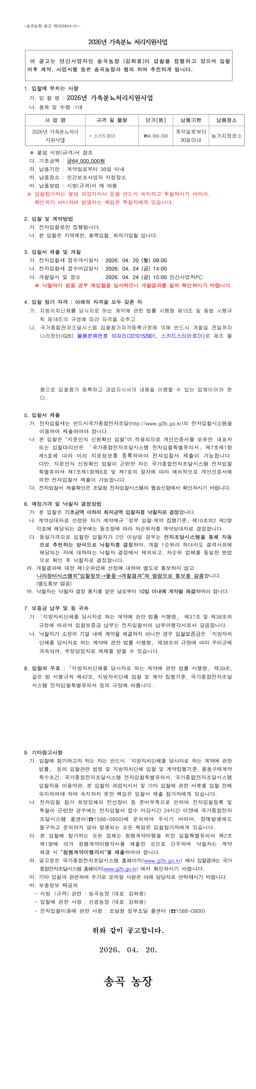 2026년 가축분뇨처리지원사업(송곡농장) |