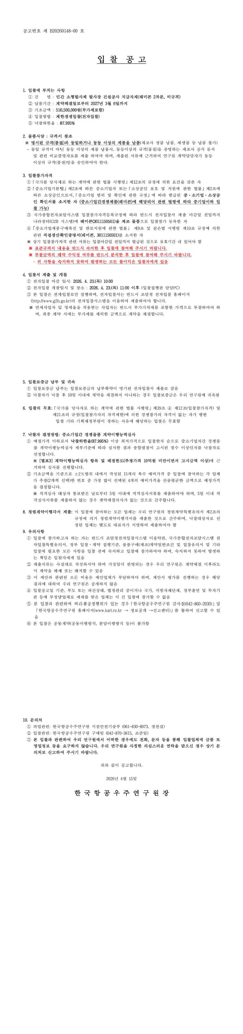 민간 소형발사체 발사장 건설공사 지급자재(레미콘 2차분, 비규격) |