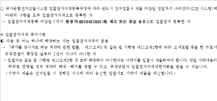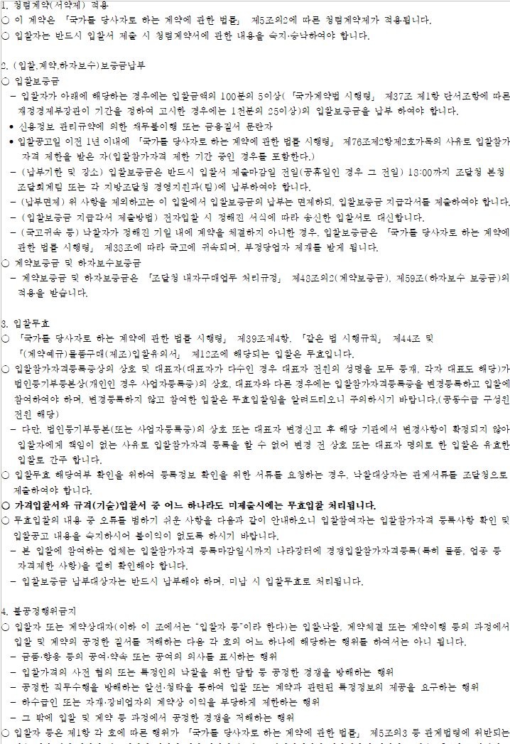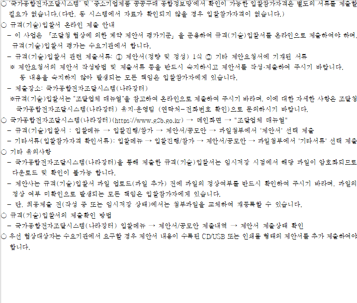 기타 세부사항은 전자입찰 공고서에 첨부된 과업내용서, 내역서 등을 반드시 확인하시기 바랍니다.