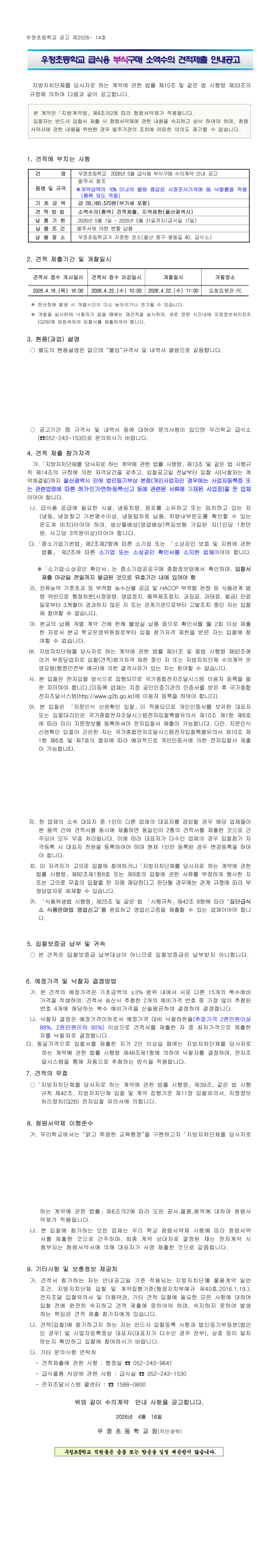 2026.5월 우정초등학교 학교급식용 부식 구매 소액수의 공고 |