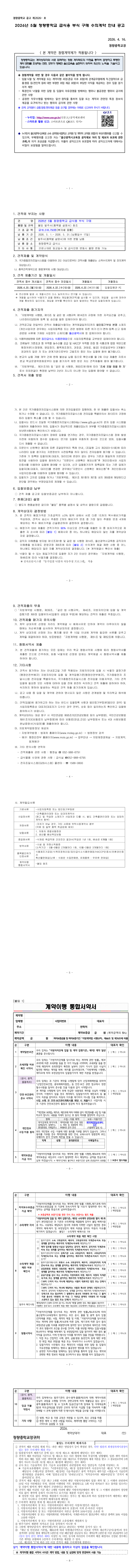 2026년 5월 청량중학교 급식용 부식 구매 수의계약 안내 공고 |