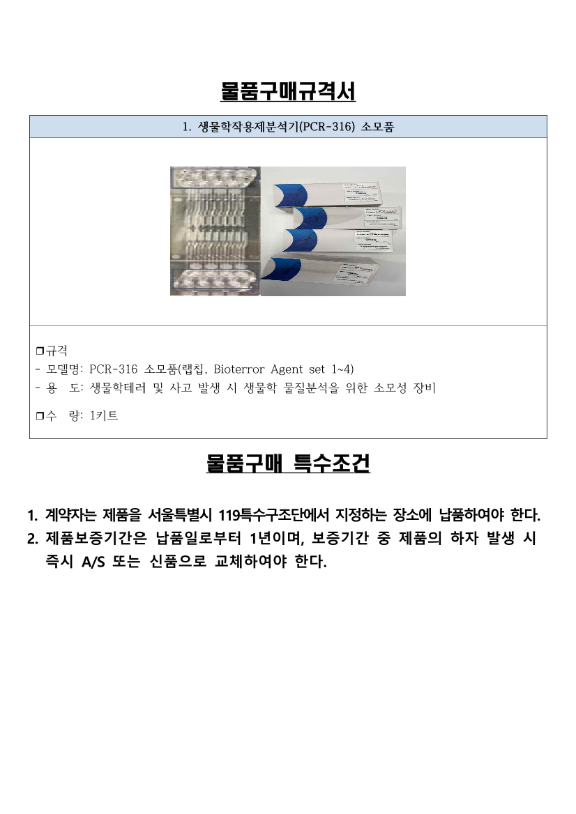 2026년 특수구조대 생물학작용제 분석기 소모품 구매 |