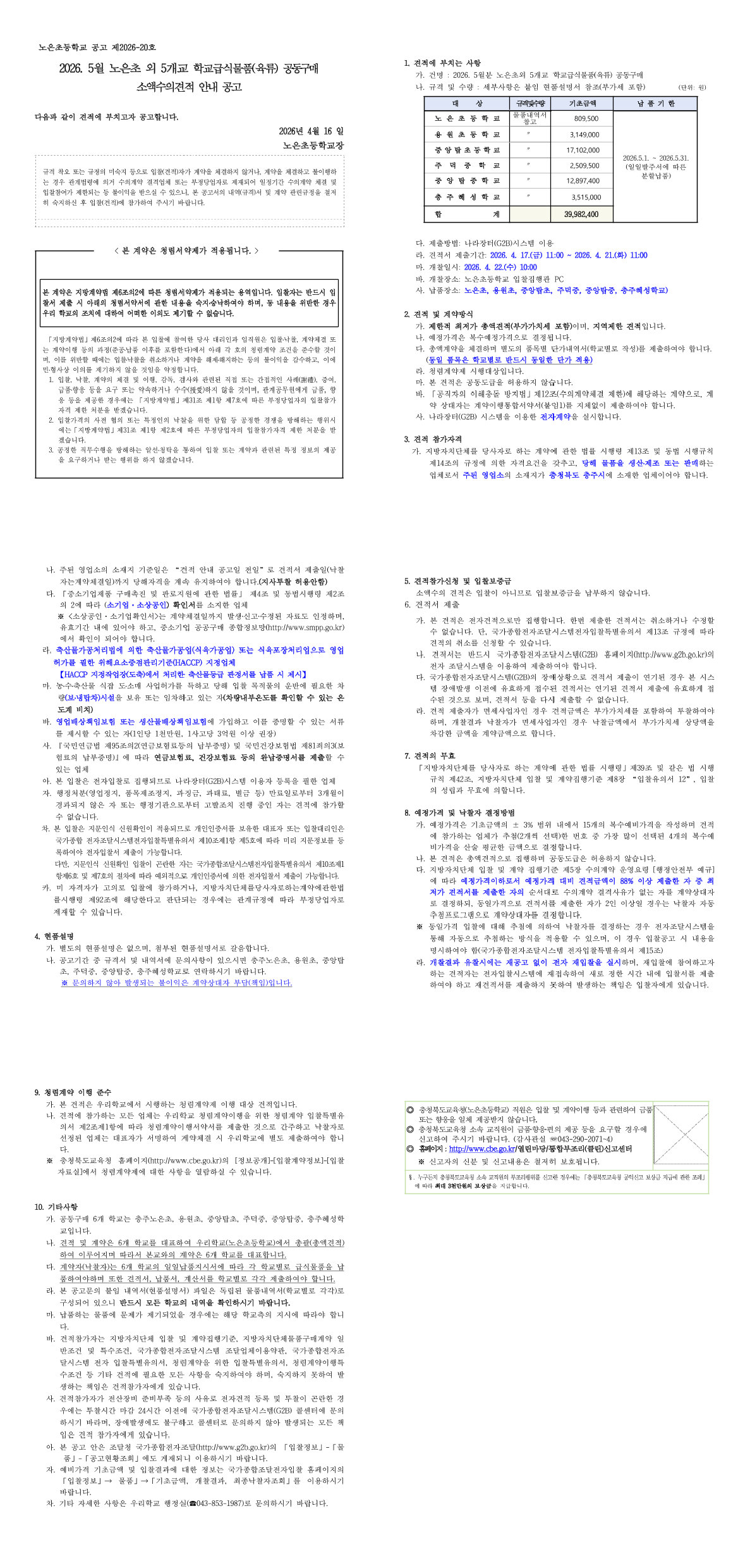 2026. 5월분 노은초외 5개교 학교급식(육류) 소액수의 안내 공고 |