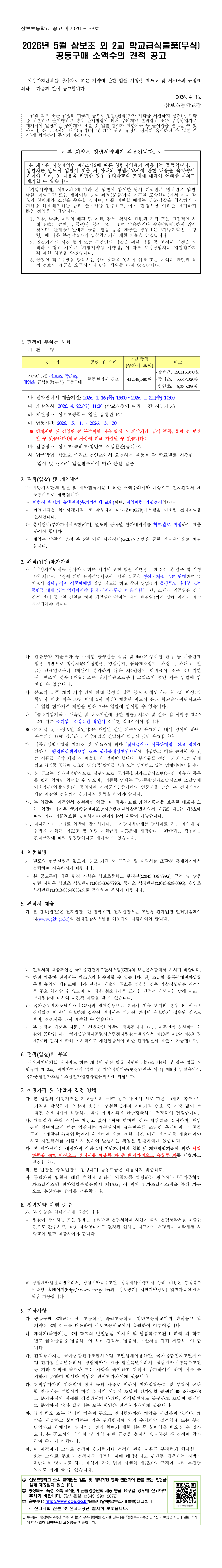 2026년 5월 삼보초 외 2교 학교급식물품(부식) 공동구매 소액수의 견적 공고 |