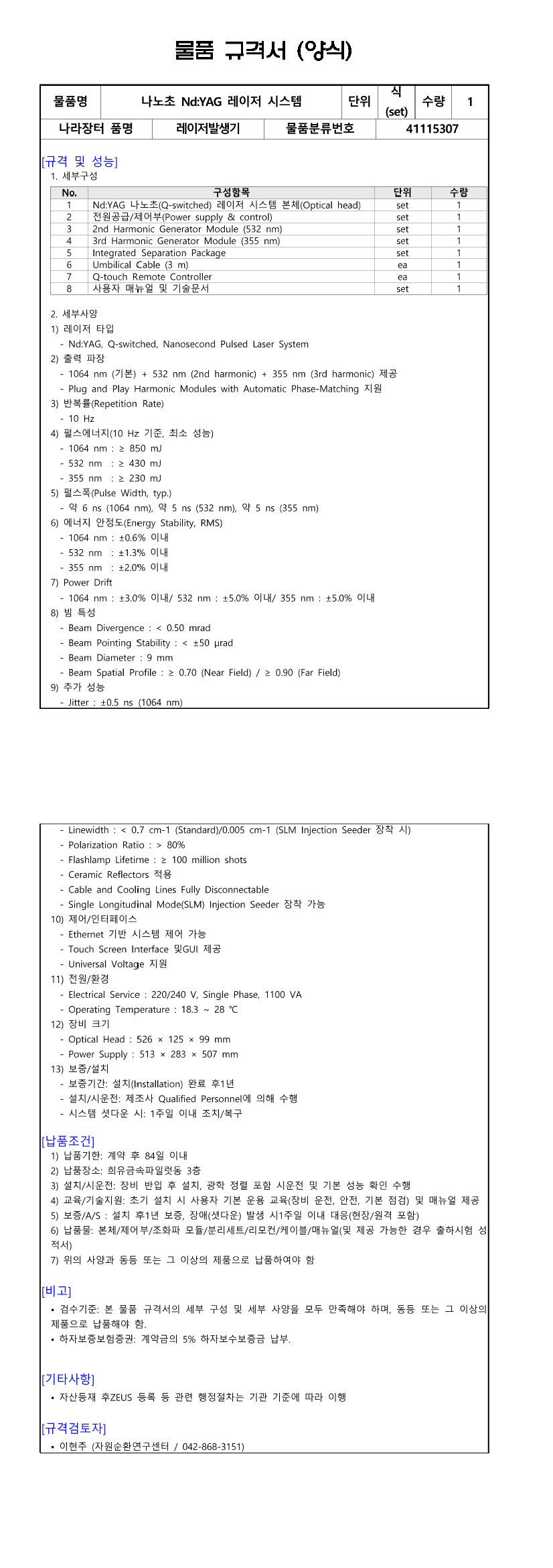 나노초 네오디뮴 야그레이저 시스템 구입 |