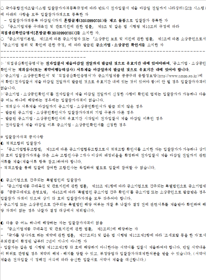 ○ 이 입찰은 「중소기업제품 구매촉진 및 판로지원에 관한 법률」 제7조 제2항 에 따라 낙찰자를 결정합니다.