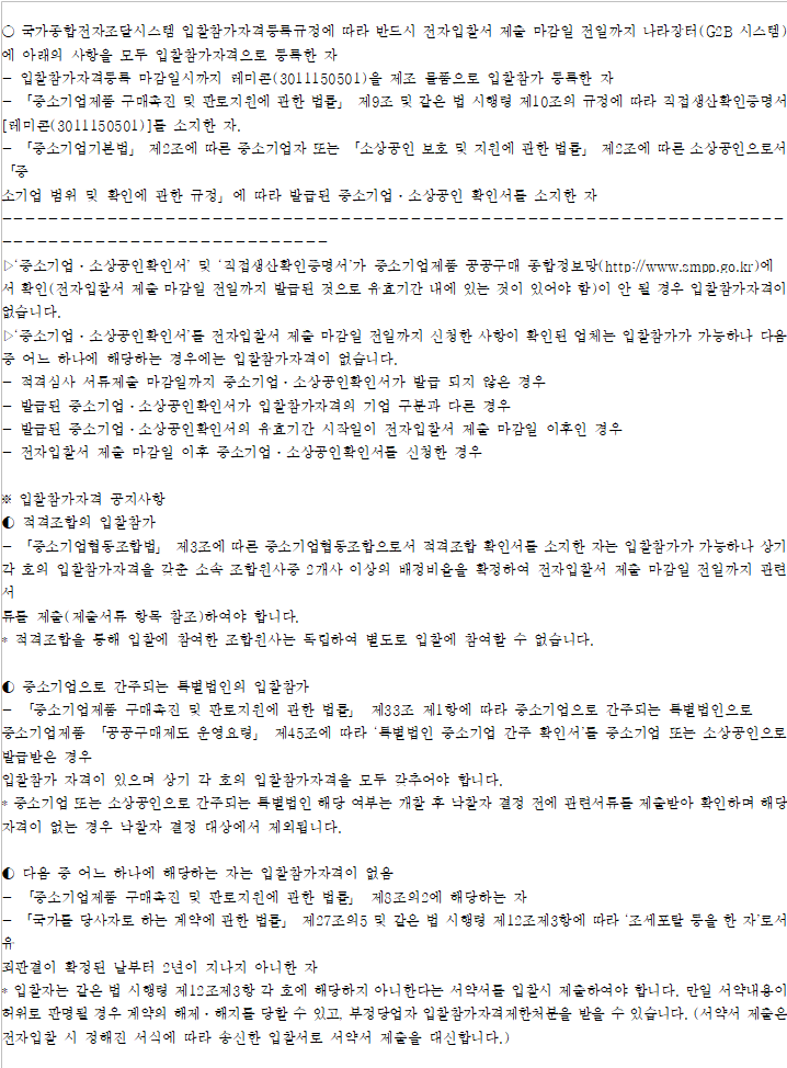 ○ 이 입찰은 「중소기업제품 구매촉진 및 판로지원에 관한 법률」 제7조 제2항 에 따라 낙찰자를 결정합니다.