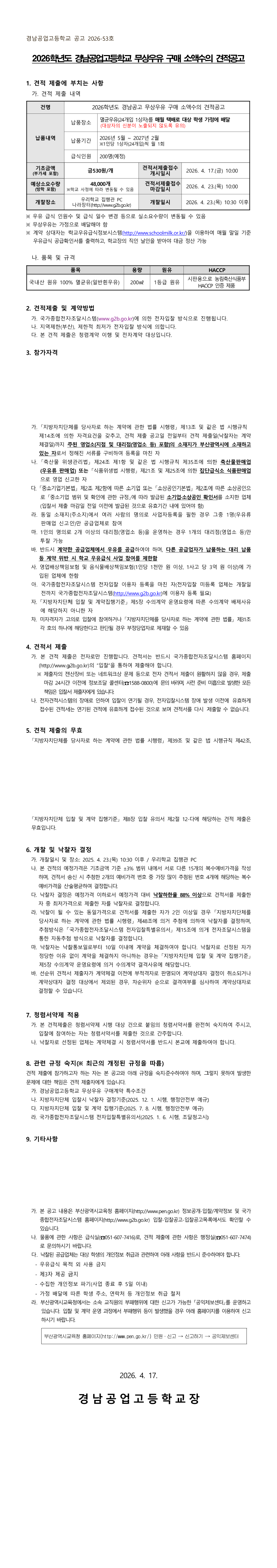 2026학년도 경남공고 무상우유 구매 소액수의 견적공고 |
