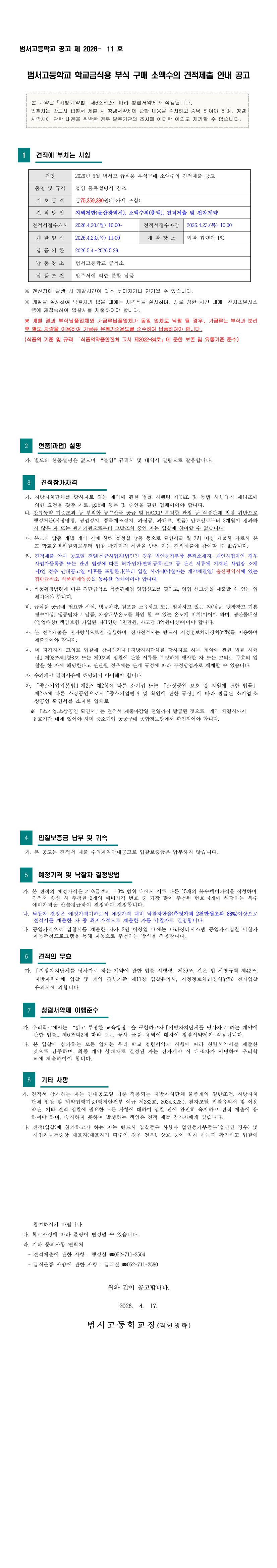 2026년 5월 범서고 급식용 부식구매 소액수의 견적제출 공고 |