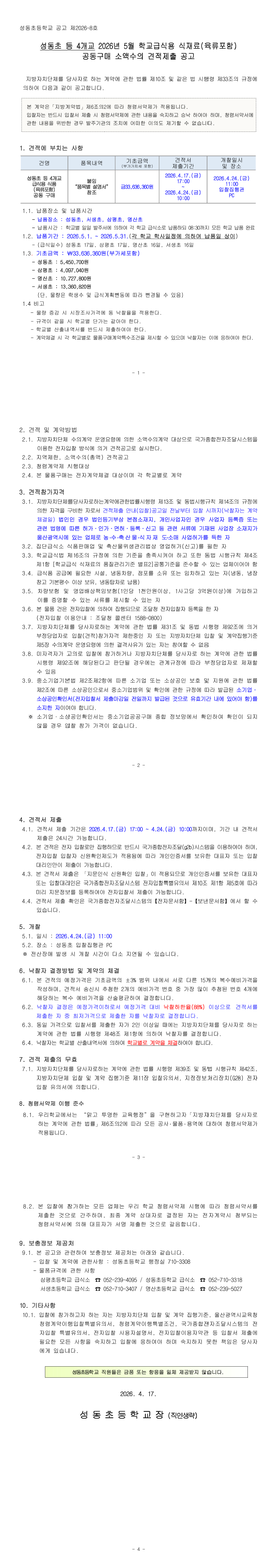 성동초 등 4개교 2026년 5월 학교급식용 식재료(육류포함) 공동구매 소액수의 견적제출 공고 |