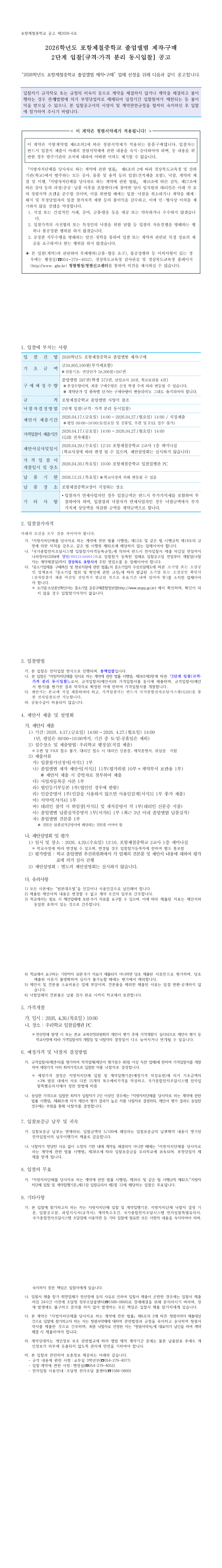 2026학년도 포항제철중학교 졸업앨범 제작 구매 입찰 공고 |