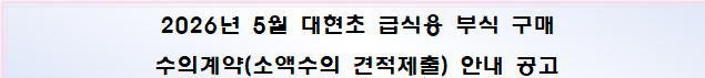 대현초 급식용 부식구매 소액수의 견적제출 공고
