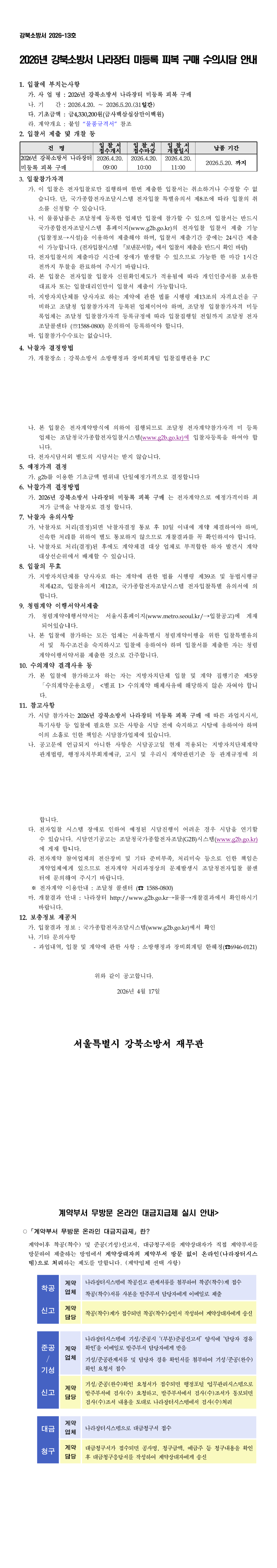 2026년 강북소방서 나라장터 미등록 소방공무원 피복 구매 |