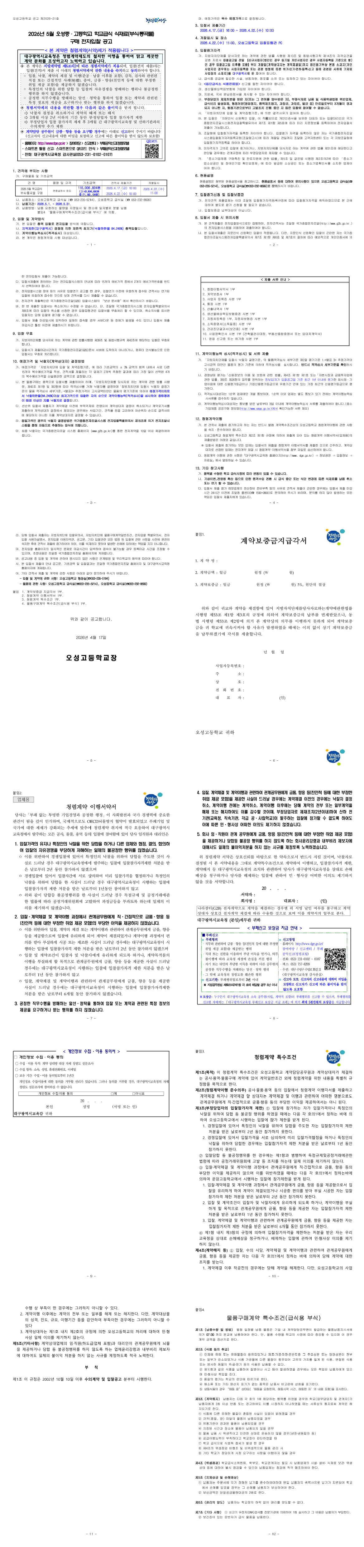 오성중고등학교 5월 식재료(부식) 입찰 공고 |