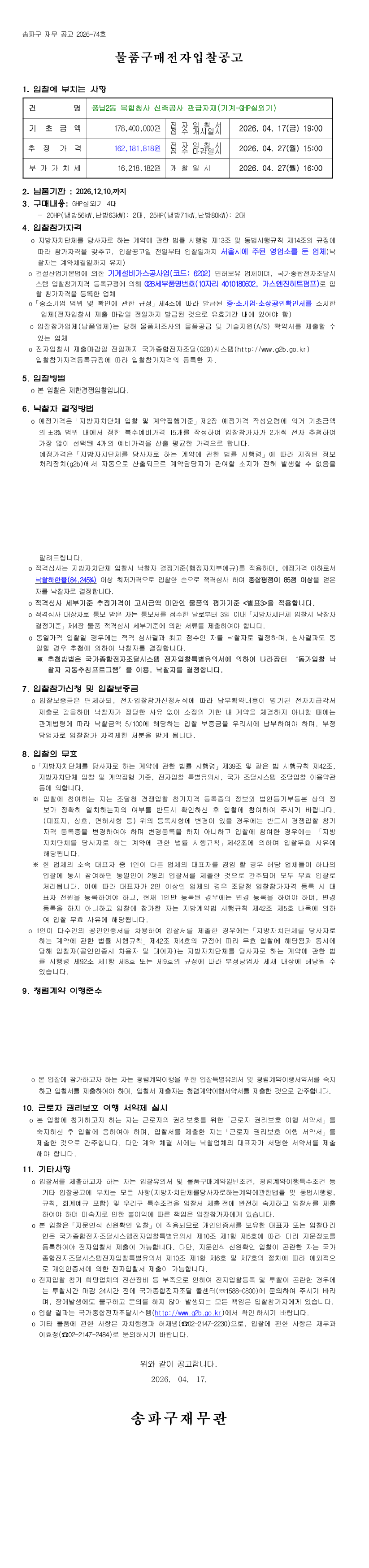 풍납2동 복합청사 신축공사 관급자재(기계-GHP실외기) 구매 |