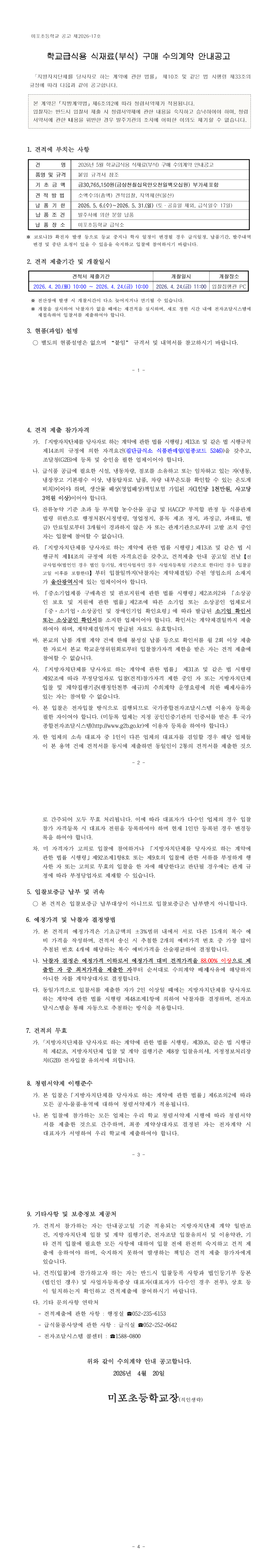 2026년 5월 학교급식용 식재료(부식) 구매 수의계약 안내공고 |