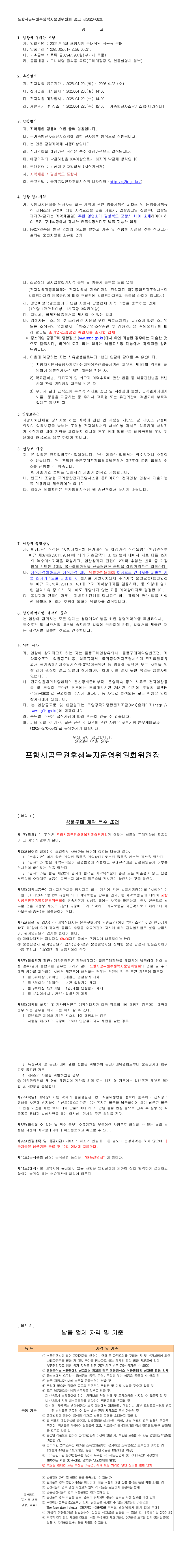 2026년 5월 포항시청 구내식당 식육류 구매 |