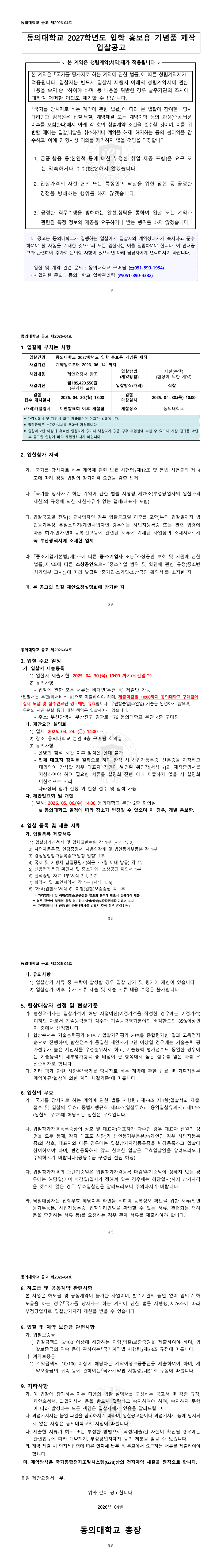 동의대학교 2027학년도 입학 홍보용 기념품 입찰공고(2026-04) |