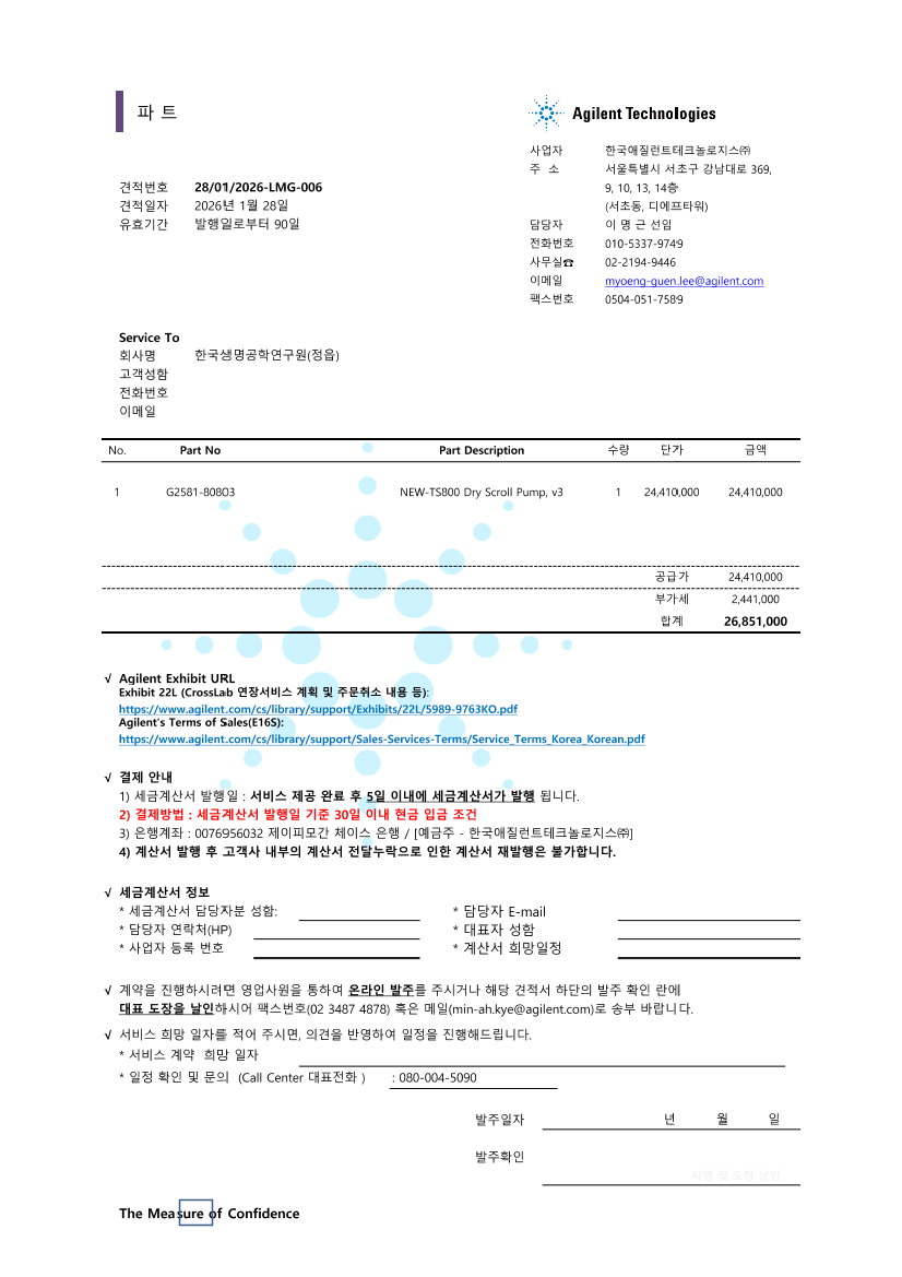 액체크로마토그래피 질량분석기 건식 스크롤 진공펌프 |
